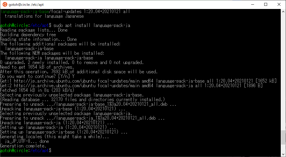 % sudo apt install language-pack-ja